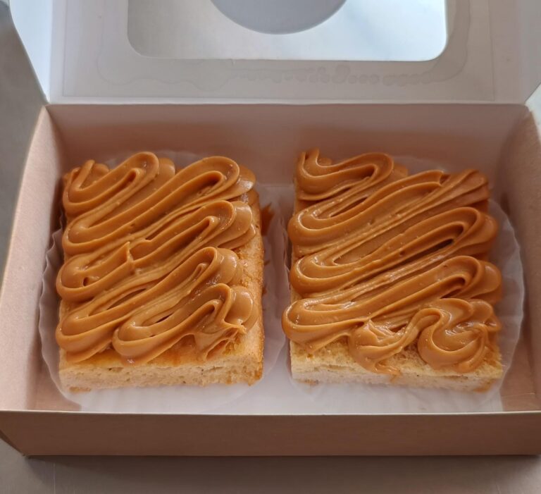 Pan de yuca tipo waffle hecho a base de harina de yuca, con arequipe endulzado con Stevia y bocadillo con colágeno hidrolizado cero azúcar.