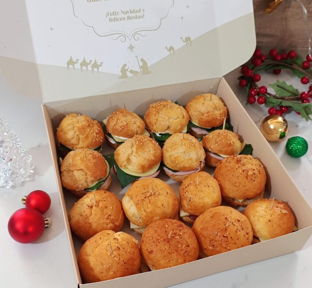 - 8 mini sandwiches con jamón de pavo, lechuga, queso chitaga y queso crema